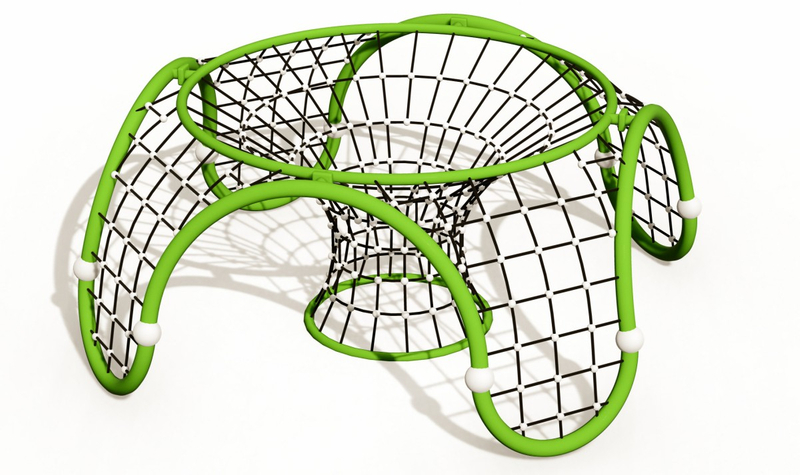 Предназначен для детей от 3 до 12 лет. Его изогнутая конструкция из плетеной веревки и закругленная стальная рама создают безопасное и веселое игровое пространство: дети могут ползать, лазить и балансировать на натяжной веревочной сети, чтобы развивать крупную моторику, координацию и уверенность.