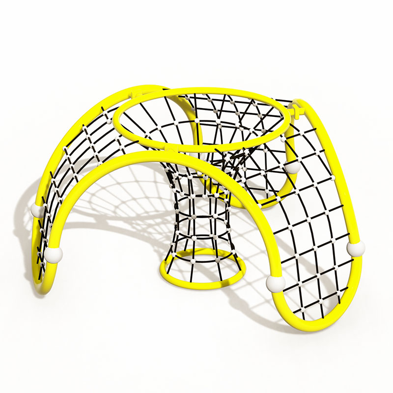 Предназначен для детей от 3 до 12 лет. Его изогнутая конструкция из плетеной веревки и закругленная стальная рама создают безопасное и веселое игровое пространство: дети могут ползать, лазить и балансировать на натяжной веревочной сети, чтобы развивать крупную моторику, координацию и уверенность.