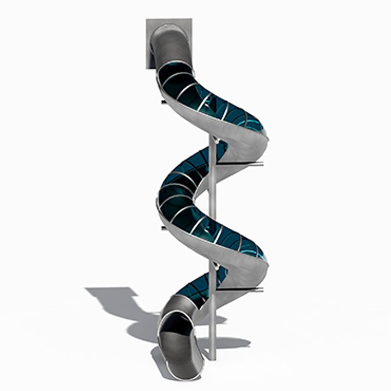 Эти одностоечные уличные горки из темной прозрачной панели из нержавеющей стали являются центральным элементом коммерческих игровых площадок премиум-класса.